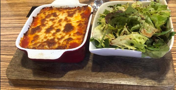 | LASAGNE chèvre, épinards, saumon fumé et sa salade verte |